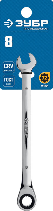Комбинированный гаечный ключ трещоточный 8 мм, ЗУБР (27074-08_z01, )