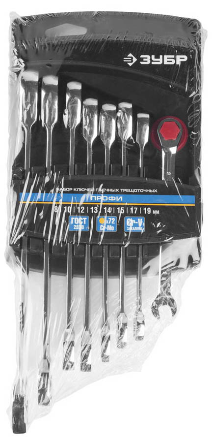 Набор комбинированных гаечных ключей трещоточных 8 шт, 8 - 19 мм, ЗУБР