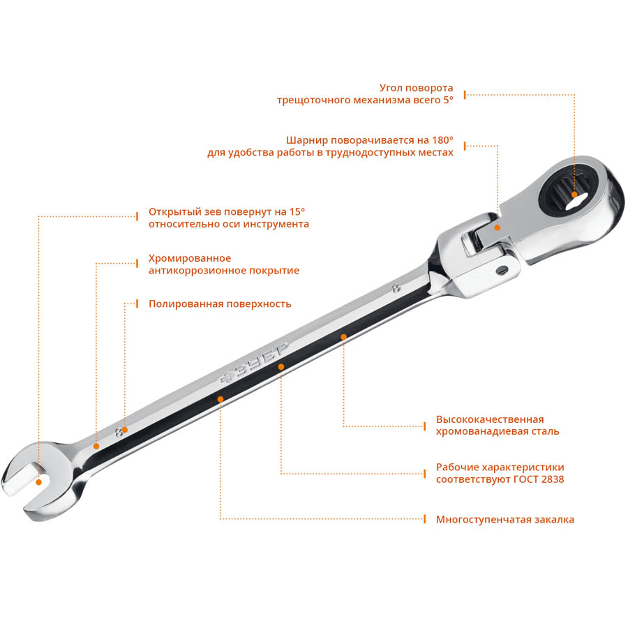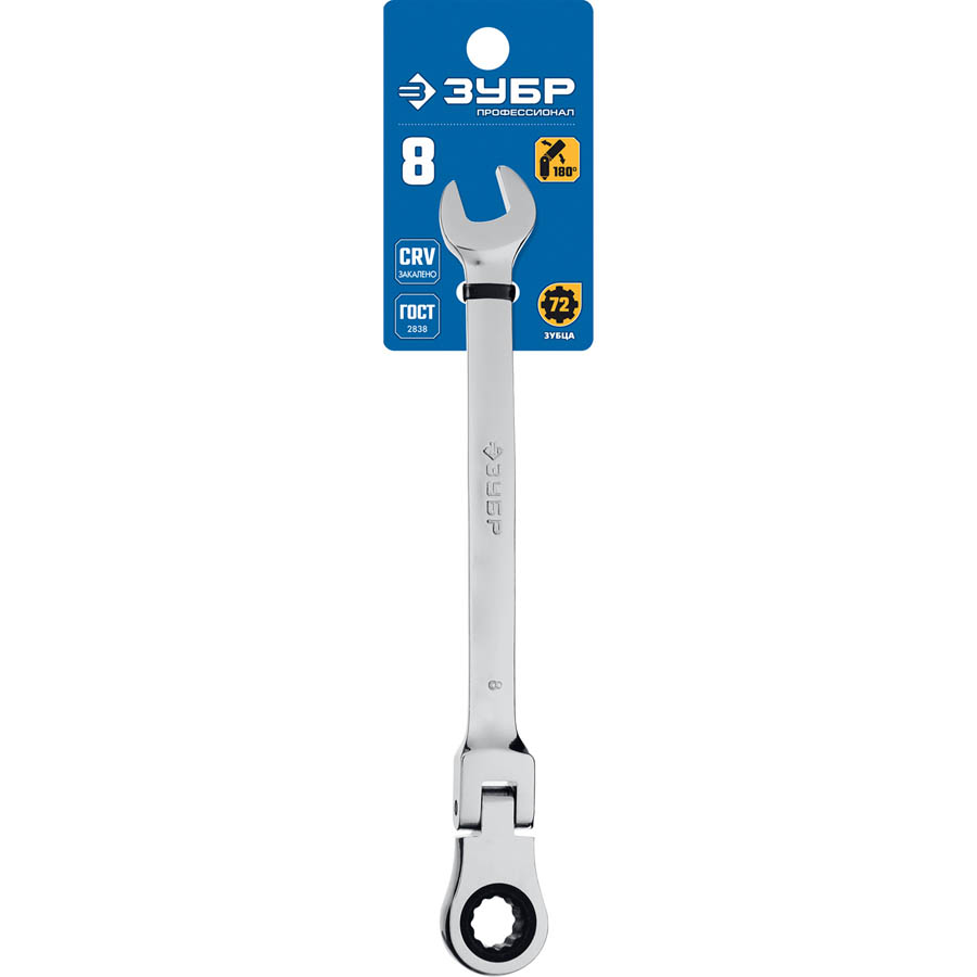 Комбинированный гаечный ключ трещоточный шарнирный 8 мм, ЗУБР