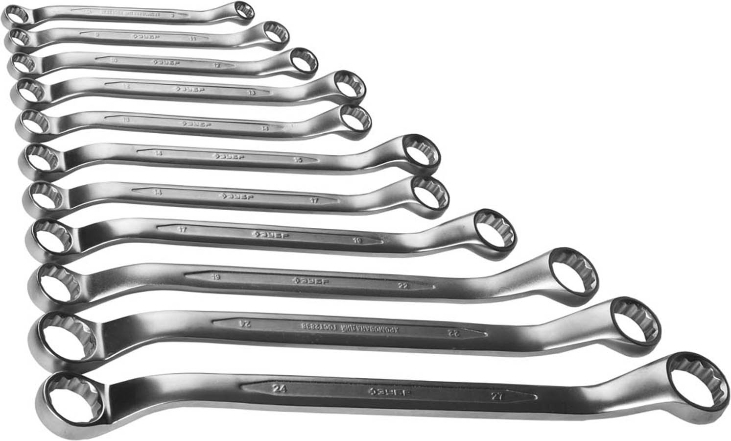 Набор накидных гаечных ключей изогнутых 11 шт, 8 - 27 мм, ЗУБР