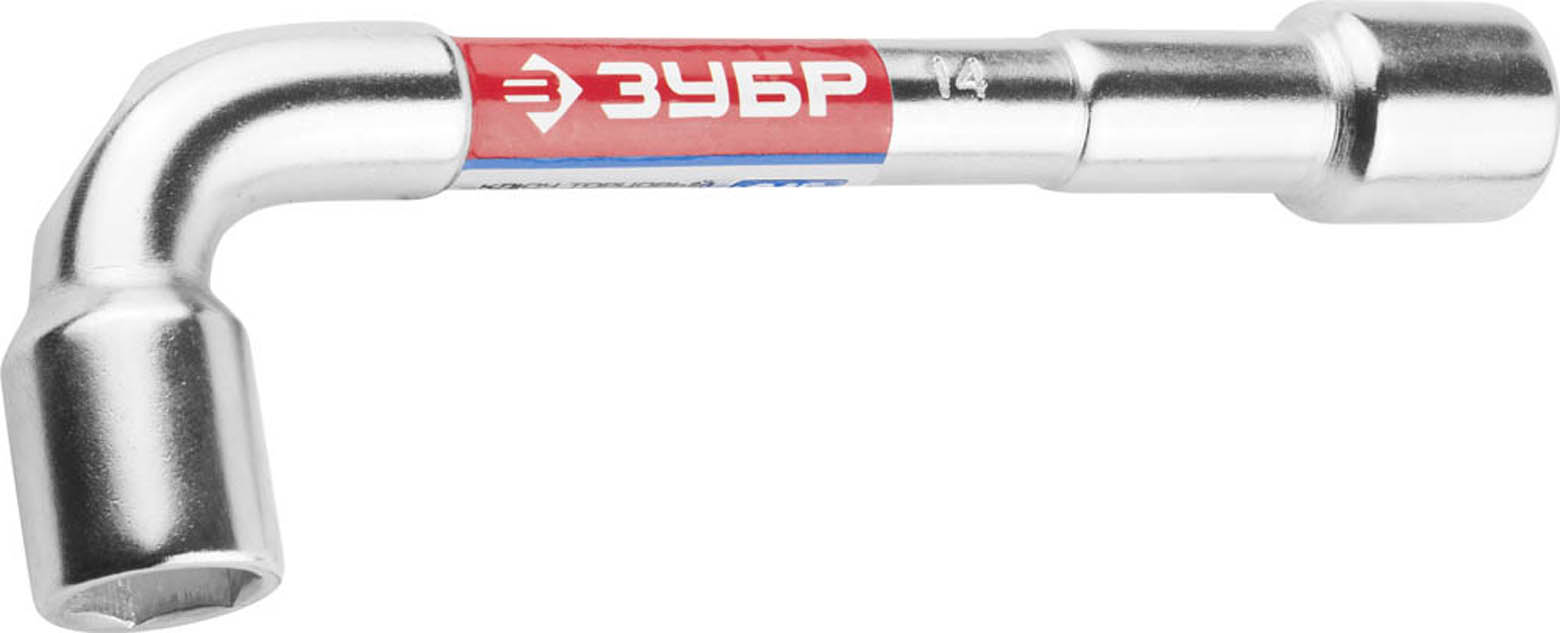 ЗУБР 14 мм, хромированный, ключ торцовый Г-образный проходной 27185-14