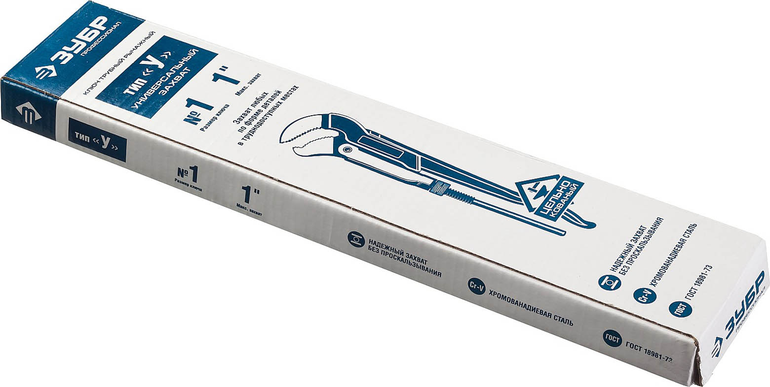 ЗУБР Тип "У", №1, ключ трубный, изогнутые губки