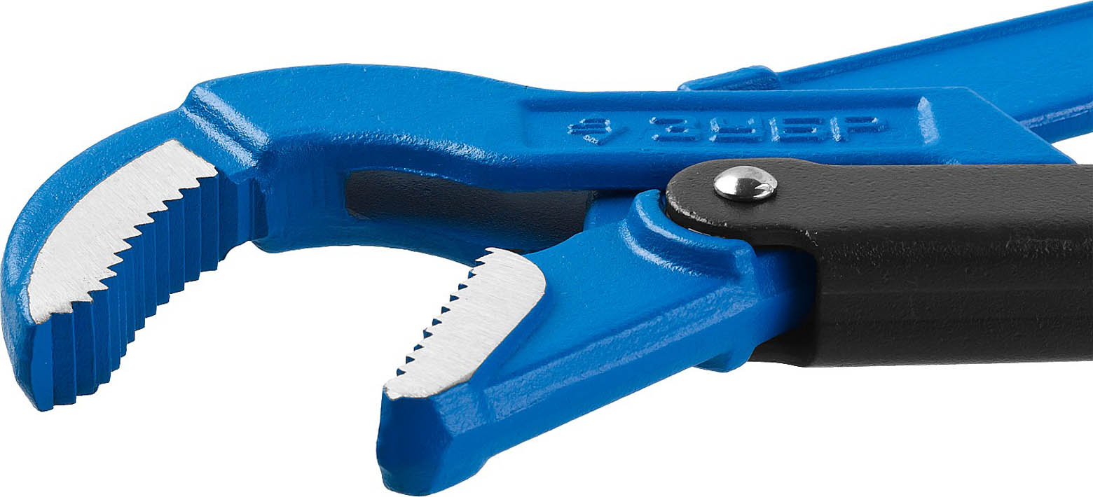 Ключ трубный ЗУБР 27337-1_z01, предназначен для работ с трубами и крепежом различной формы и размера. Изготовлен из высококачественной хромованадиевой стали. Наклонные под углом 45° губки позволяют работать в труднодоступных местах. Цельнокованая конструкция и специальная форма губок позволяют применять инструмент при больших нагрузках. Индукционная закалка зубцов до твердости 53 - 59 HRC. Предохранительный стопор для регулировочной гайки.