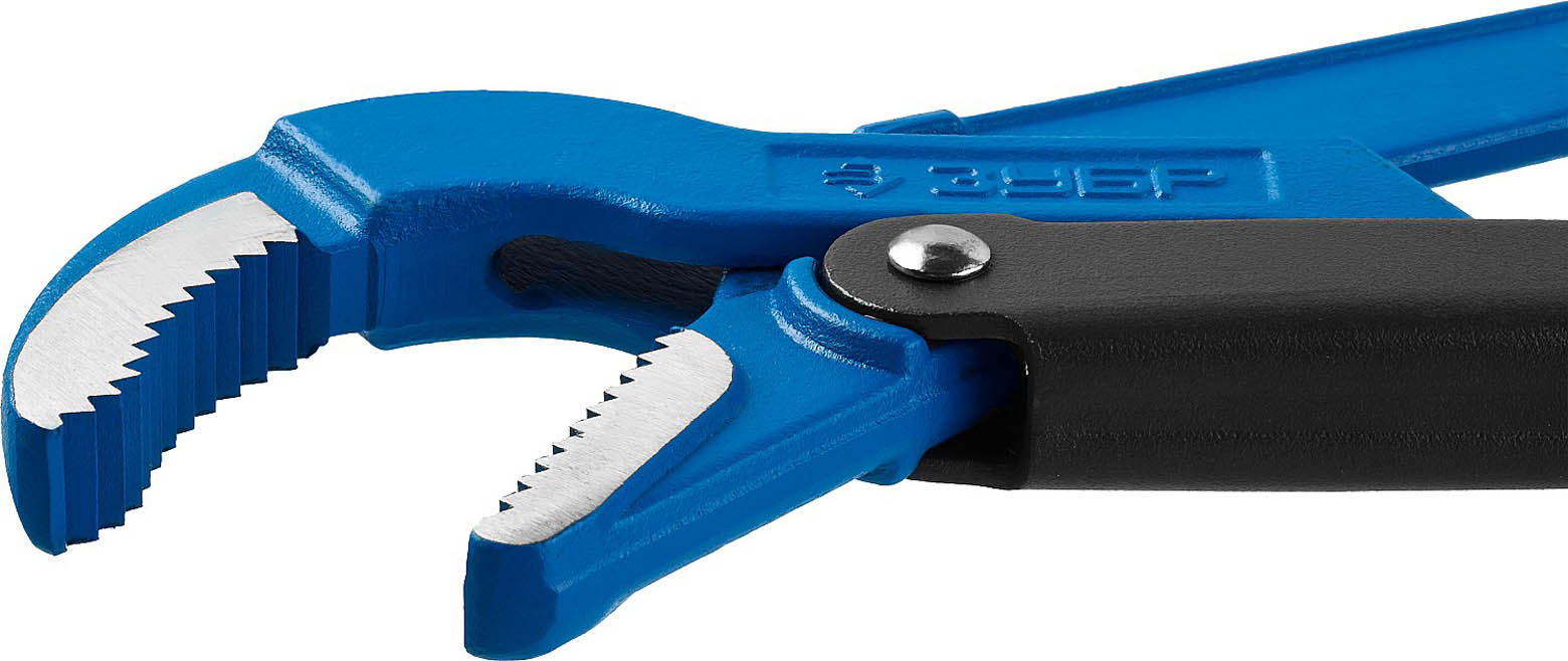 Ключ трубный ЗУБР 27337-2_z01, предназначен для работ с трубами и крепежом различной формы и размера. Изготовлен из высококачественной хромованадиевой стали. Наклонные под углом 45° губки позволяют работать в труднодоступных местах. Цельнокованая конструкция и специальная форма губок позволяют применять инструмент при больших нагрузках. Индукционная закалка зубцов до твердости 53 - 59 HRC. Предохранительный стопор для регулировочной гайки.