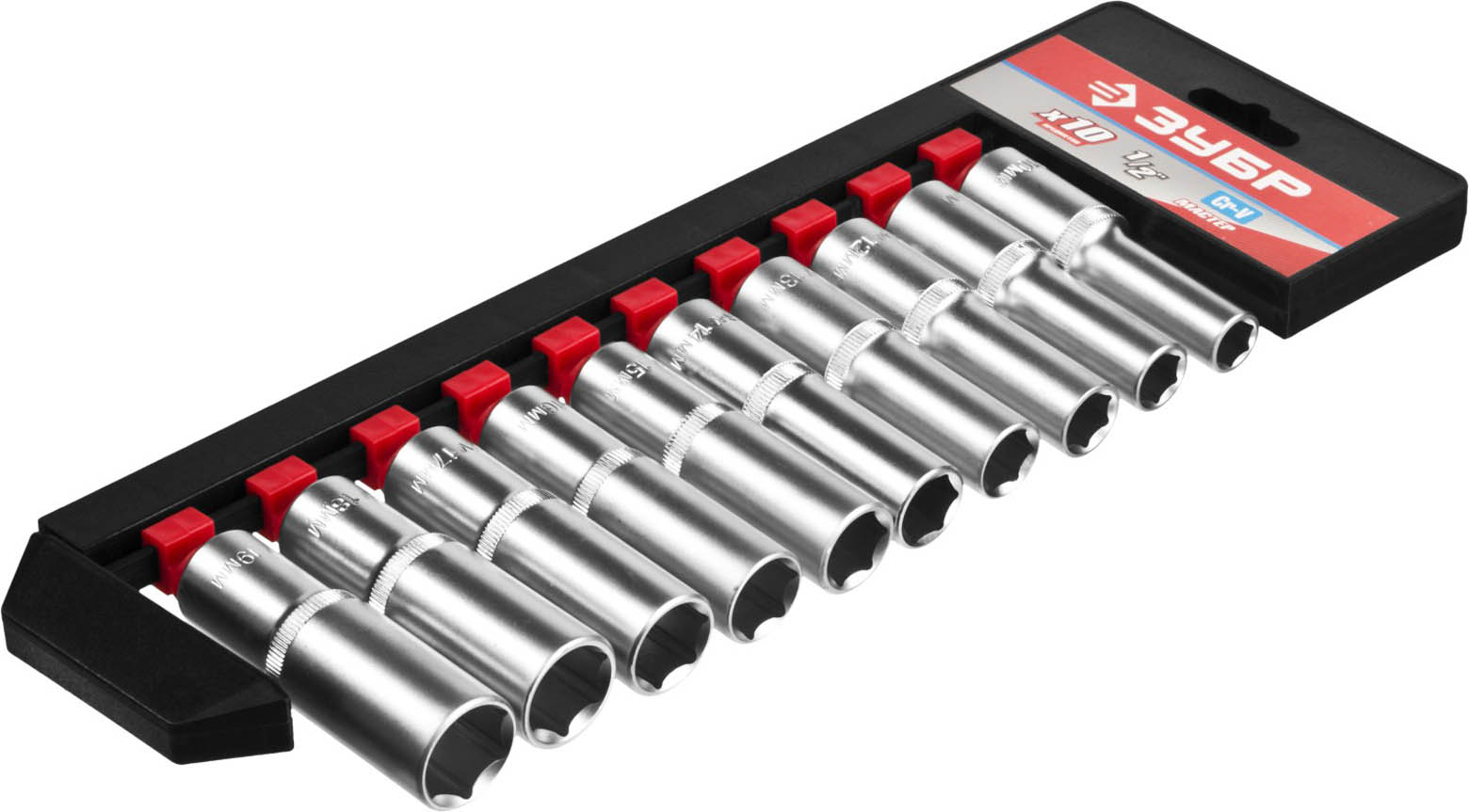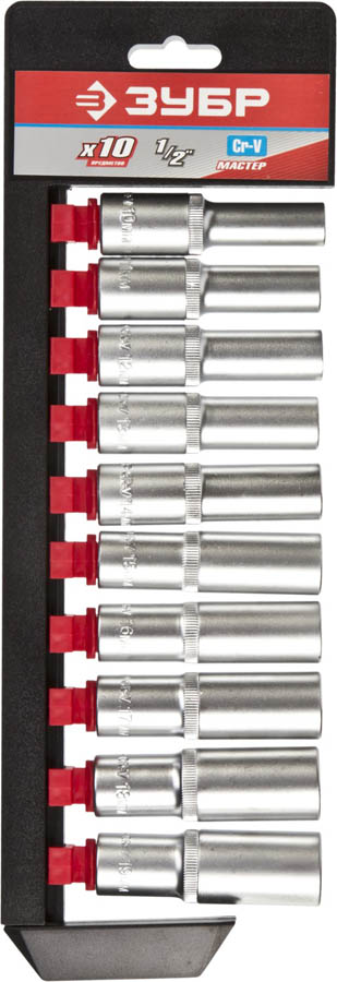 ЗУБР МАСТЕР 1/2" набор торцовых головок удлиненных 10 предм.