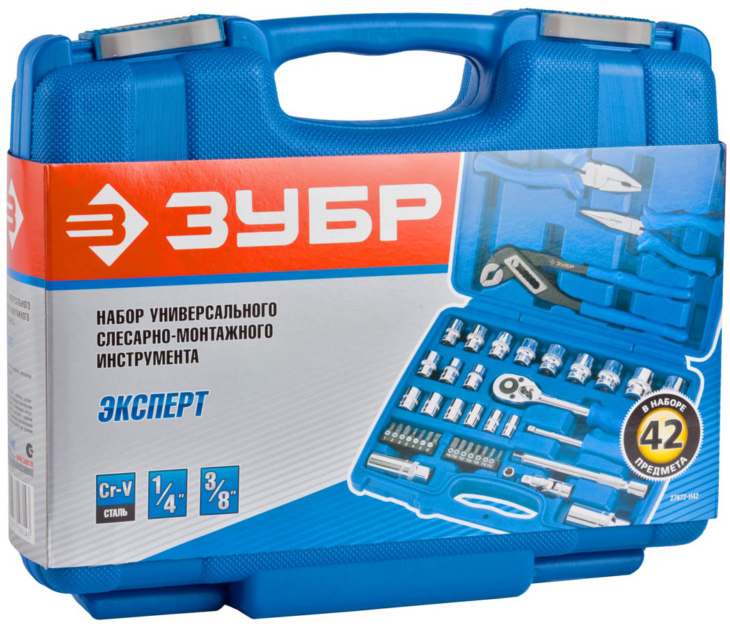 ЗУБР Эксперт-42 универсальный набор инструмента 42 предм. Серия Профессионал.