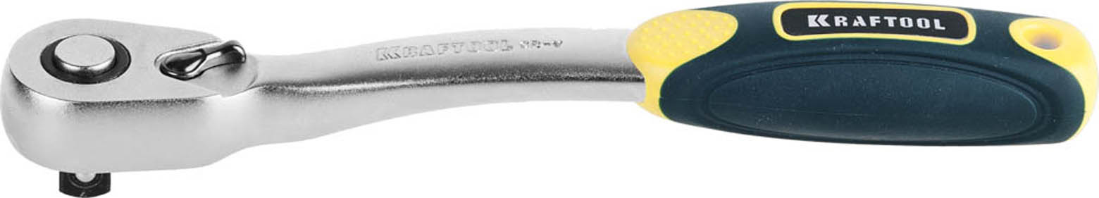 Трещотка для торцовых головок KRAFTOOL "PRO", Сr-V сталь, 72 зубца, изогнутая, 3/8"