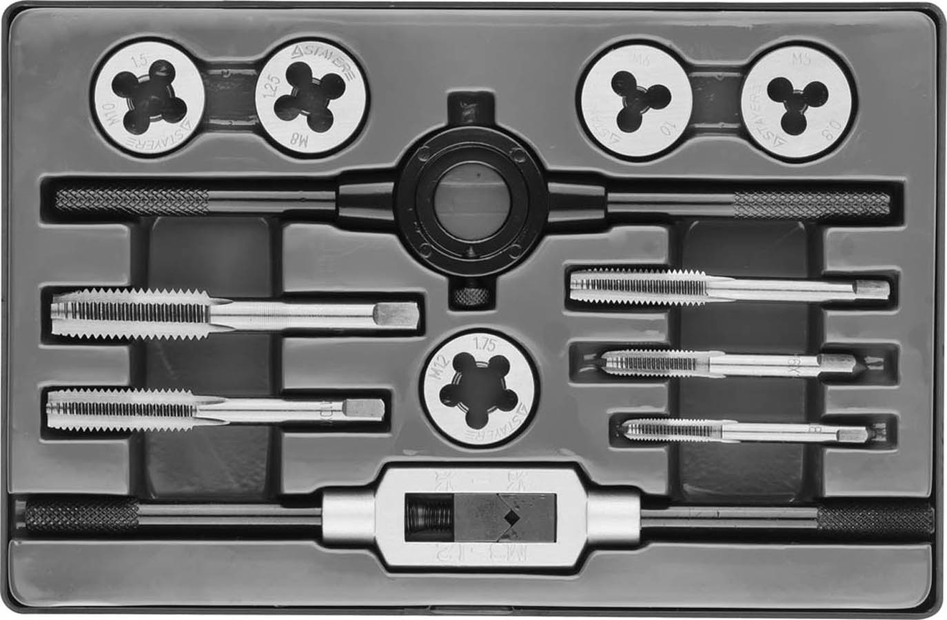 Набор резьбонарезной STAYER 28012-H12, предназначен для нарезания внутренней и внешней метрической резьбы указанного ряда размеров. Использование качественных материалов и современного оборудования гарантирует высокий рабочий ресурс и удобство при нарезании резьбы.