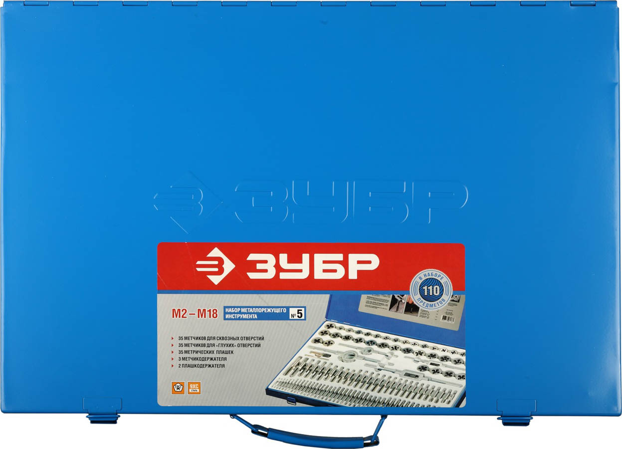 ЗУБР 110 предметов, 9ХС, набор резьбонарезной в мет. боксе 28119-H110