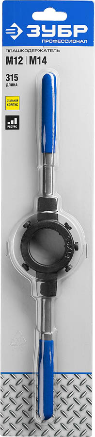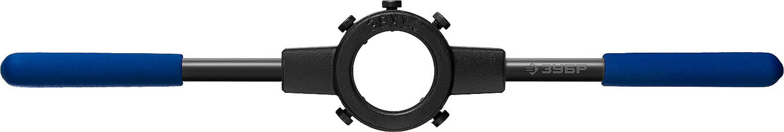 Плашкодержатель ЗУБР 28150-38, применяется при ручном нарезании внешней резьбы совместно с плашками. Специальные резиновые накладки на ручки предотвращают проскальзывание и обеспечивают надежность хвата. Плашкодержатель оснащен стопорными центровочными винтами для надежной фиксации плашки, парооксидирование защищает поверхность от коррозии.