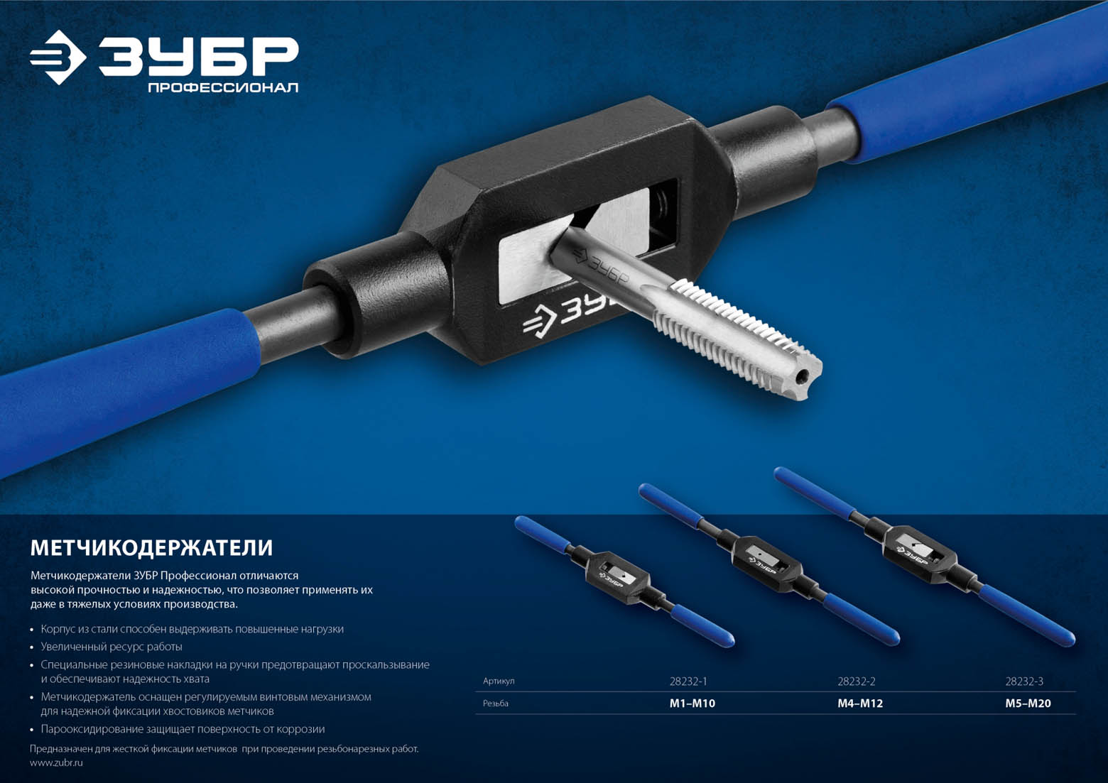 ЗУБР М5 - М20, L - 375 мм, метчикодержатель 28232-3 Профессионал