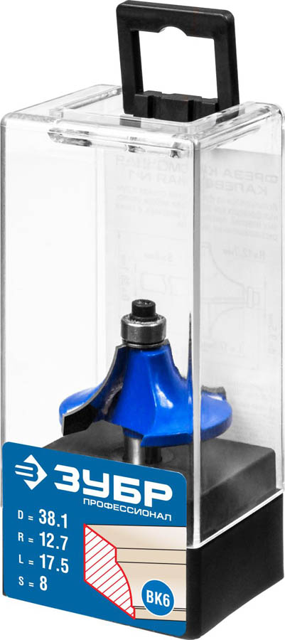 Фреза кромочная калевочная №1, D= 38,1мм, рабочая длина-17,5мм, радиус-12,7мм, хв.-8мм, d-9,5мм, ЗУБР Профессионал