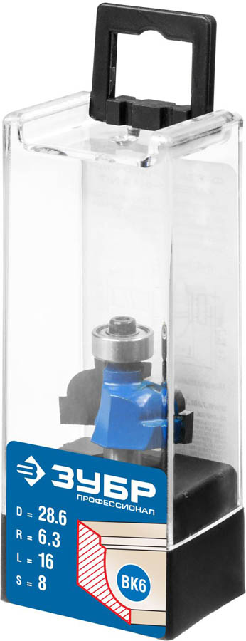 Фреза кромочная калевочная №7, D= 28,6мм, рабочая длина-16мм, радиус-6,3мм, хв.-8мм, d-12,7мм, ЗУБР Профессионал