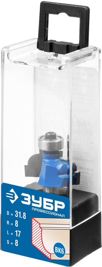 Фреза кромочная калевочная №7, D= 31,8мм, рабочая длина-17мм, радиус-8мм, хв.-8мм, d-12,7мм, ЗУБР Профессионал