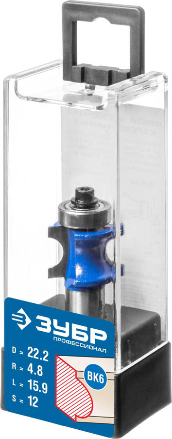 Фреза полустержневая с подшипником, D= 22,2мм, рабочая длина-15,9мм, радиус-4,8мм, хв.-12мм, d-12,7мм, ЗУБР Профессионал
