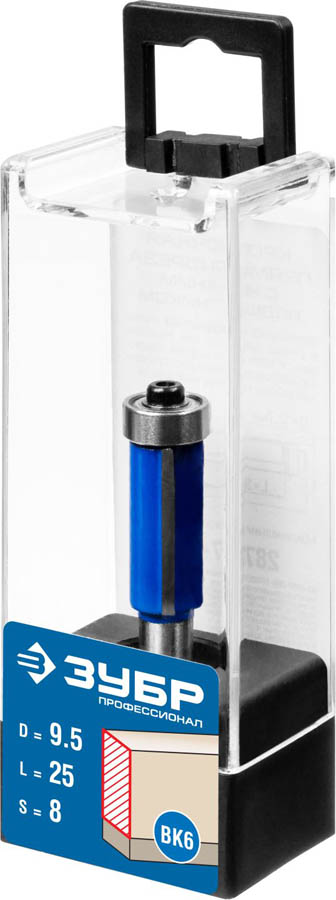 Фреза кромочная с нижним подшипником, D= 9,5мм, рабочая длина-25мм, хв.-8мм, d-9,5мм, ЗУБР Профессионал