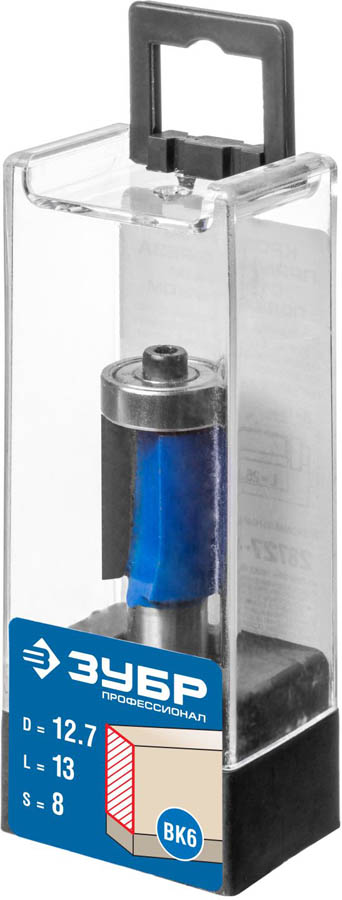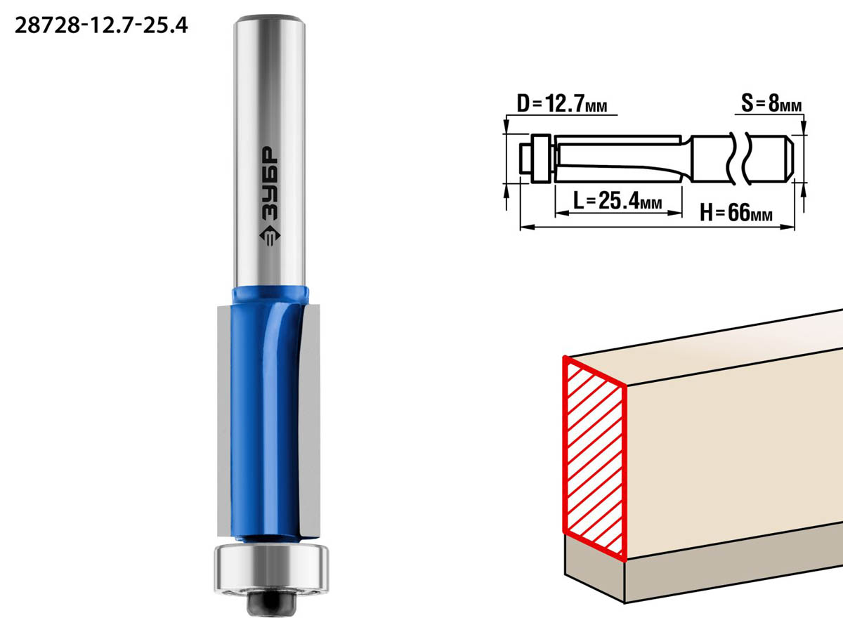Фреза кромочная с нижним подшипником(3 лезвия), D= 12,7мм, рабочая длина-25,4мм, хв.-8мм, d-12,7мм, ЗУБР Профессионал