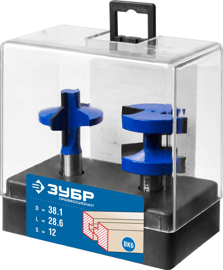 Набор фрез пазо-шиповых, D= 38,1мм, рабочая длина-28,6мм, хв.-12 мм, ЗУБР Профессионал