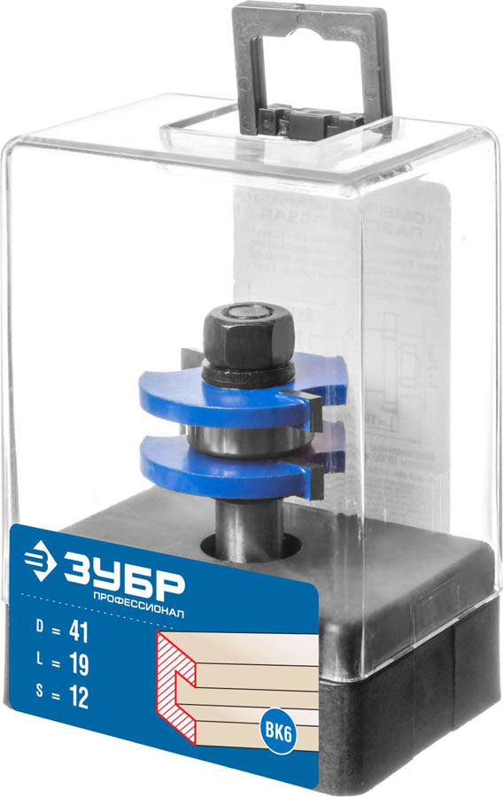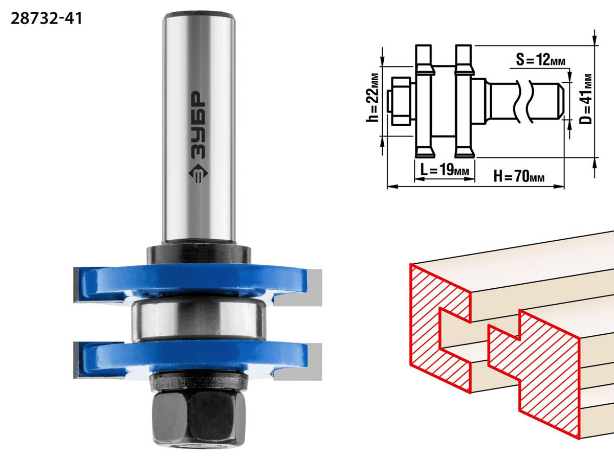 Фреза комбинированная пазо-шиповая, D= 41мм, рабочая длина-19мм, хв.-12мм, d-22мм, ЗУБР Профессионал