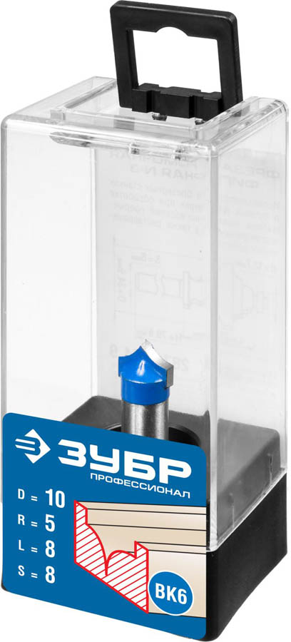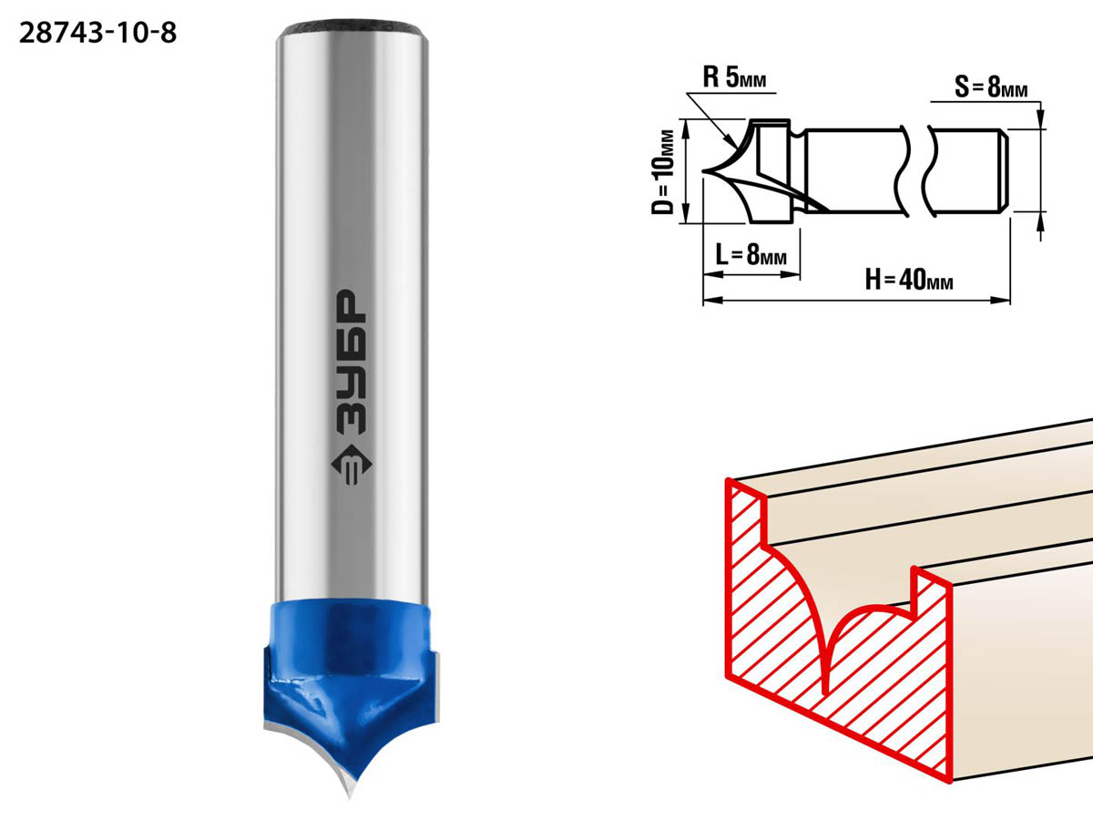 Фреза пазовая фасонная №4, D= 10мм, рабочая длина-8мм, радиус-5мм, хв.-8 мм, ЗУБР Профессионал