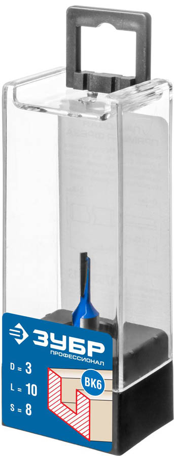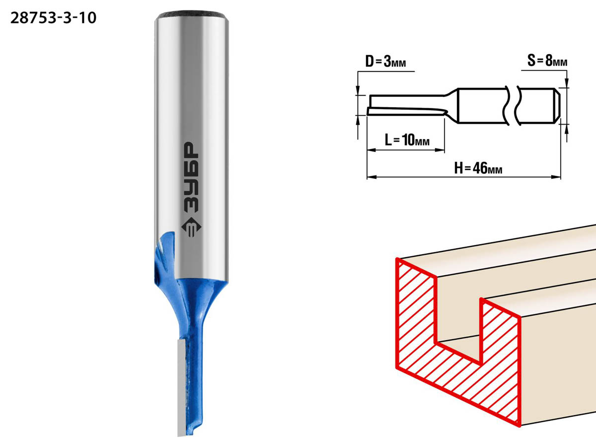Фреза пазовая прямая, D= 3мм, рабочая длина -10мм, хв.-8 мм, ЗУБР Профессионал