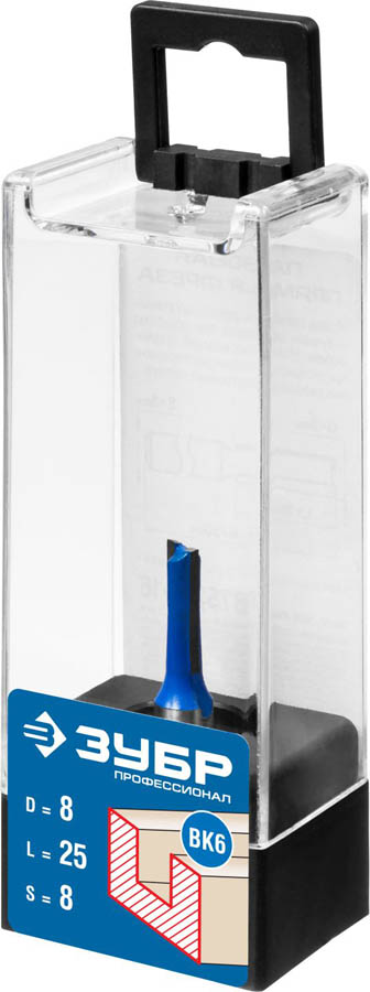 Фреза пазовая прямая, D= 8мм, рабочая длина-25мм, хв.-8 мм, ЗУБР Профессионал