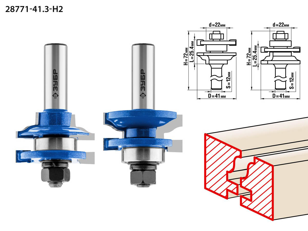 Набор фрез рамочных №1, D= 41мм, рабочая длина-25,4мм, хв.-12мм, d-22мм, ЗУБР Профессионал