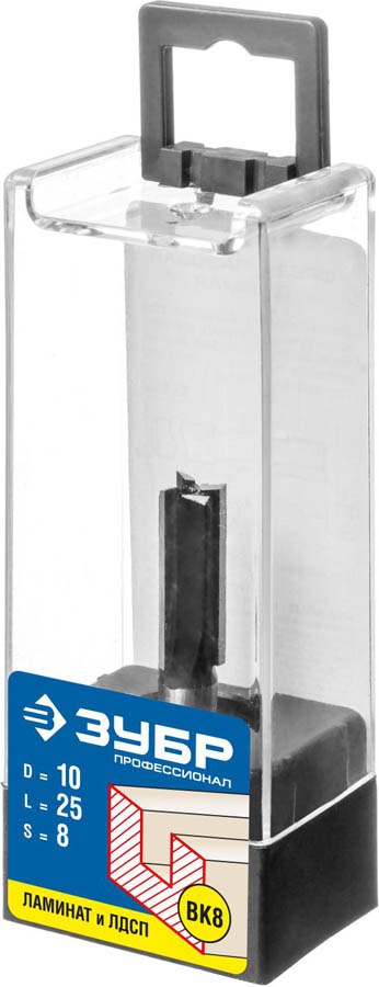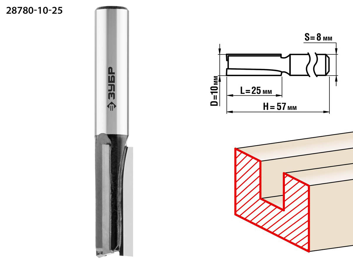 Фреза пазовая прямая, D=10 мм, рабочая длина-25 мм, хв.-8 мм, ЗУБР Профессионал