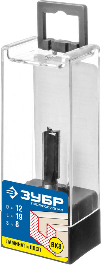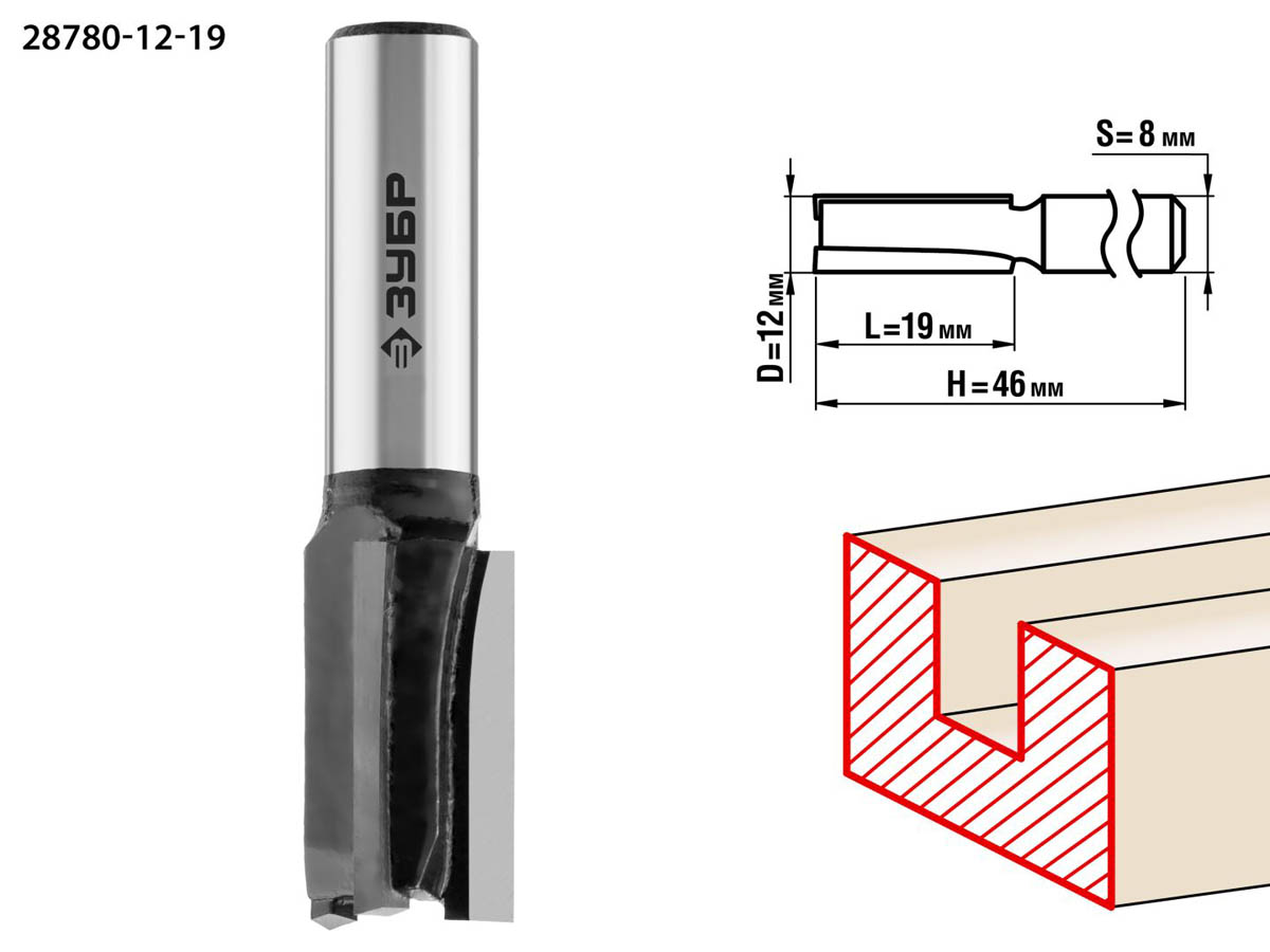 Фреза пазовая прямая, D=12 мм, рабочая длина-19 мм, хв.-8 мм, ЗУБР Профессионал