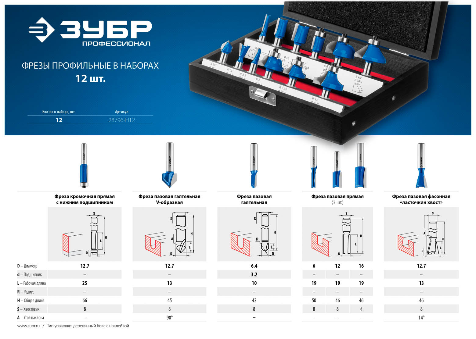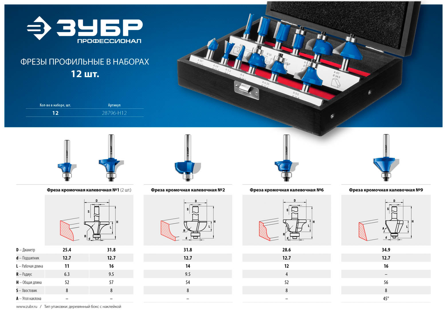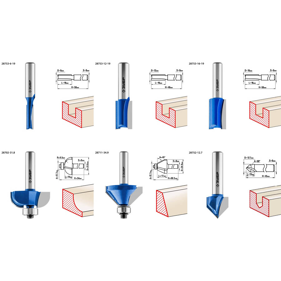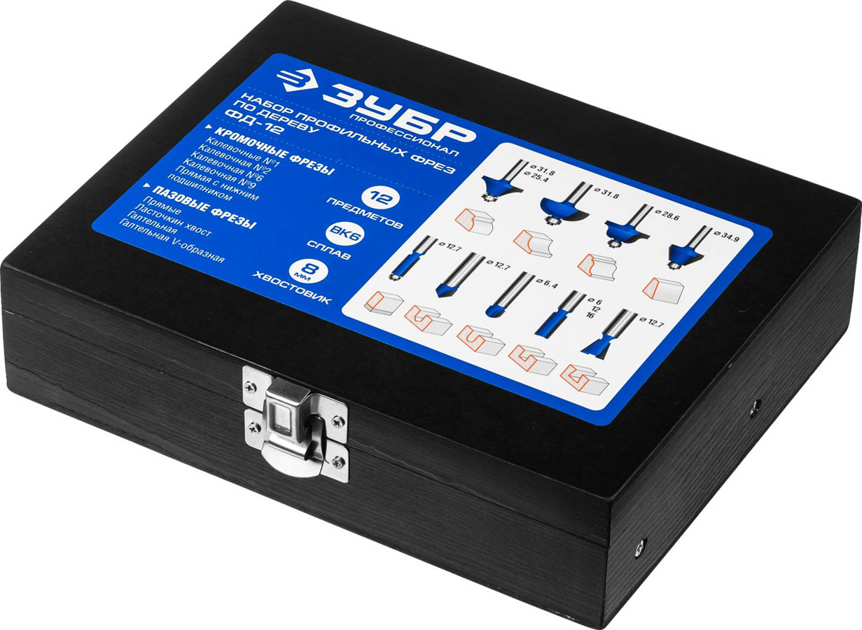 Набор профильных фрез по дереву ЗУБР "ПРОФЕССИОНАЛ", 12 шт