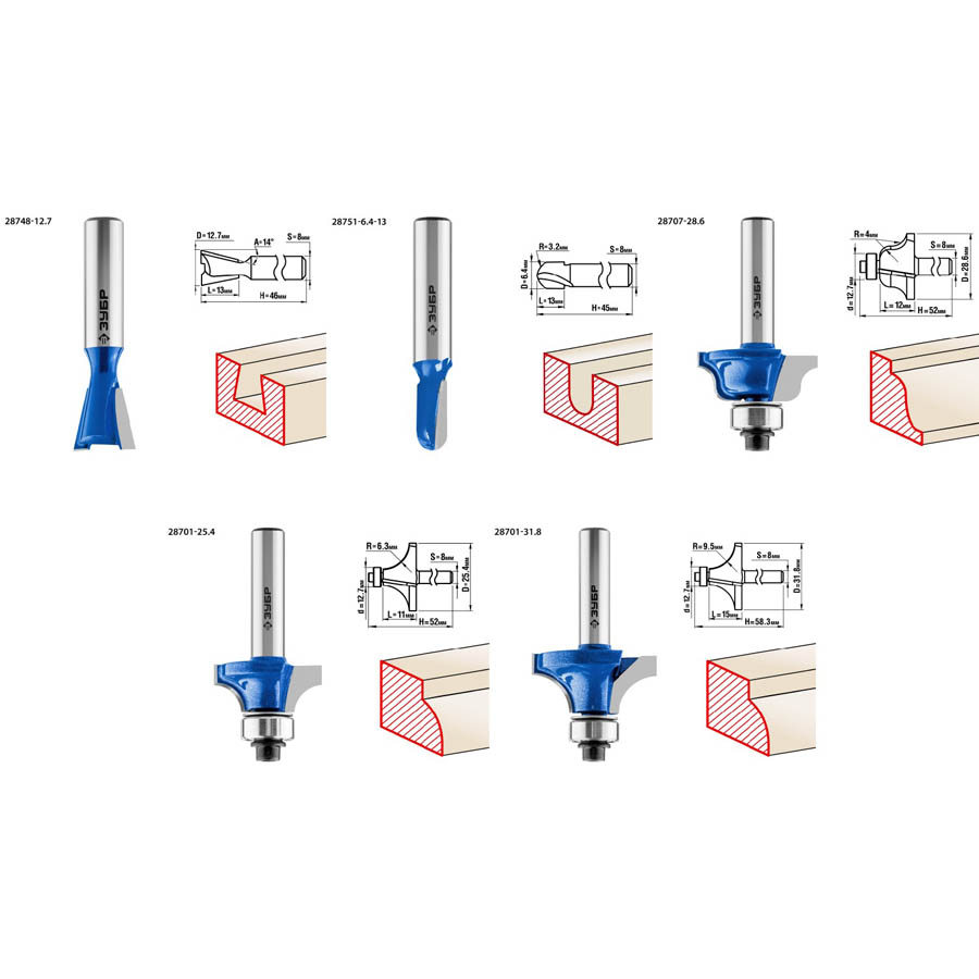 Набор профильных фрез ЗУБР 28796-H12, предназначен для изготовления профиля и обратного профиля для рамочных соединений при работе с различными видами древесины. Высококачественный твердый сплав для повышенного ресурса и чистоты обработки. Заточка производится только на самых современных станках с ЧПУ. Упорный подшипник позволяет обрабатывать криволинейные кромки без дополнительных приспособлений.