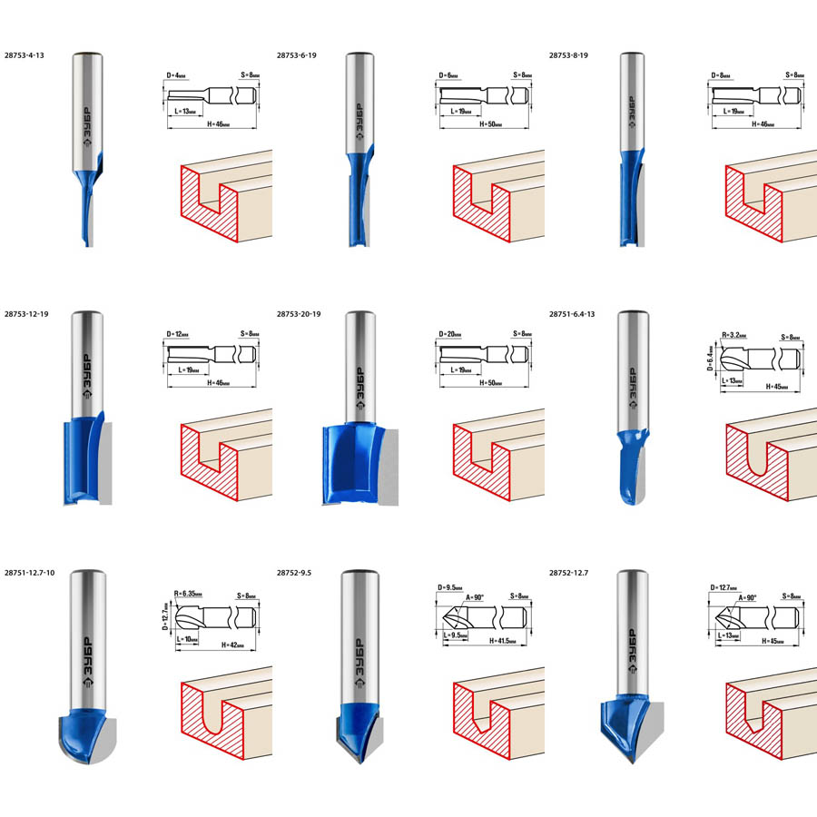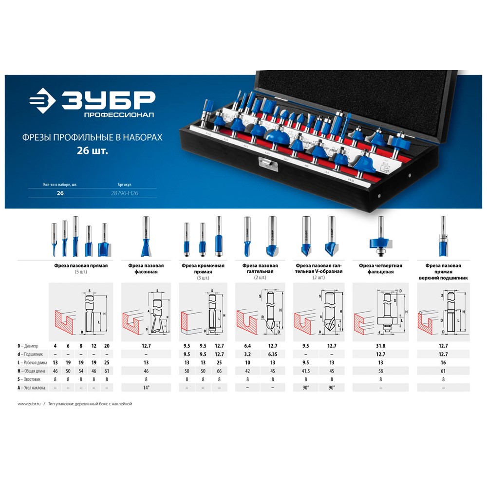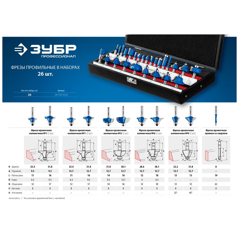 Набор профильных фрез по дереву ЗУБР "ПРОФЕССИОНАЛ", 26 шт