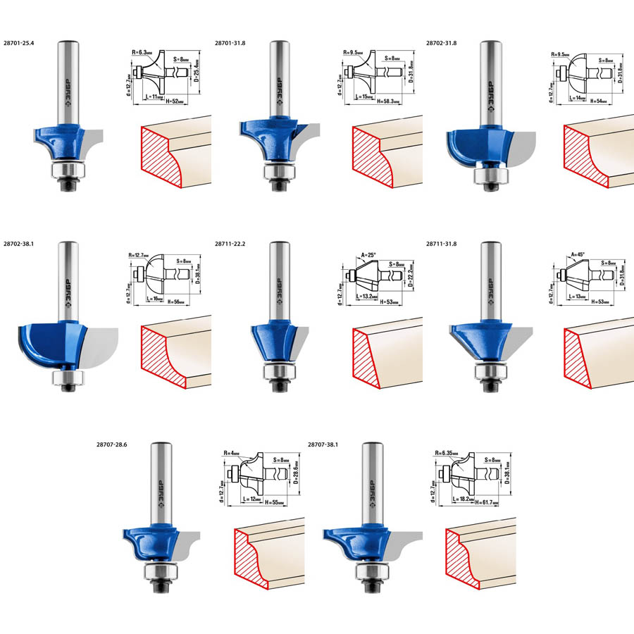 Набор профильных фрез ЗУБР 28796-H26, предназначен для изготовления профиля и обратного профиля для рамочных соединений при работе с различными видами древесины. Высококачественный твердый сплав для повышенного ресурса и чистоты обработки. Заточка производится только на самых современных станках с ЧПУ. Упорный подшипник позволяет обрабатывать криволинейные кромки без дополнительных приспособлений.