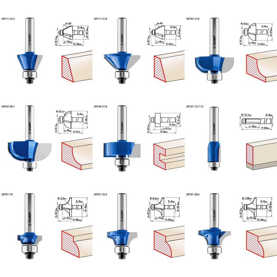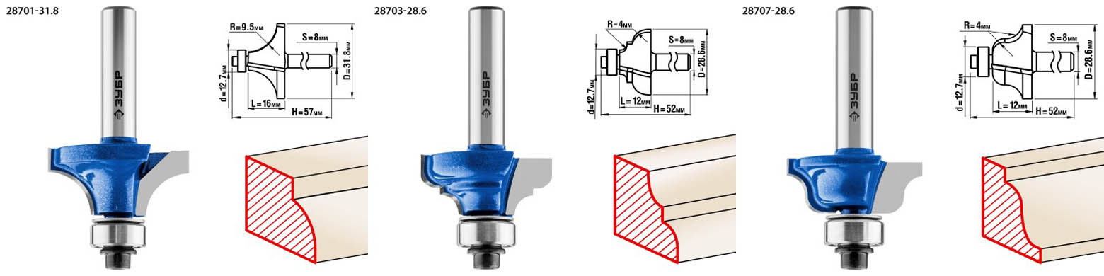Набор профильных фрез ЗУБР 28796-H30, предназначен для изготовления профиля и обратного профиля для рамочных соединений при работе с различными видами древесины. Высококачественный твердый сплав для повышенного ресурса и чистоты обработки. Заточка производится только на самых современных станках с ЧПУ. Упорный подшипник позволяет обрабатывать криволинейные кромки без дополнительных приспособлений.