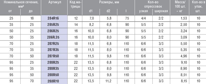Алюминиевые соединительные гильзы для жил разных сечений, от 70 до 35 мм KLAUKE 287R35