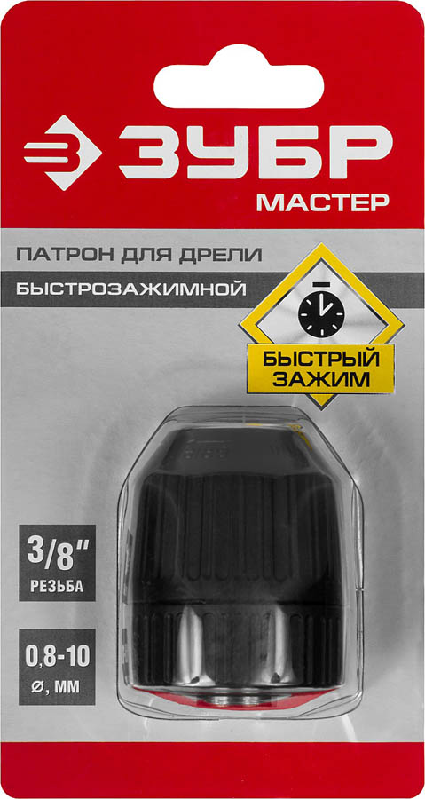 Патрон быстрозажимной ЗУБР "МАСТЕР" для дрели, 10 мм, посадочная резьба 3/8", под сверло Д 0,8-10 мм