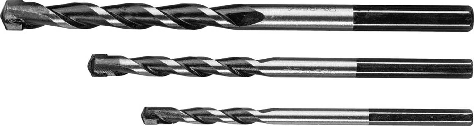 Набор ЗУБР Свёрла "СУПЕР-6" по бетону, ударные, с шестигранным хвостовиком, 5; 6; 8мм, 3шт