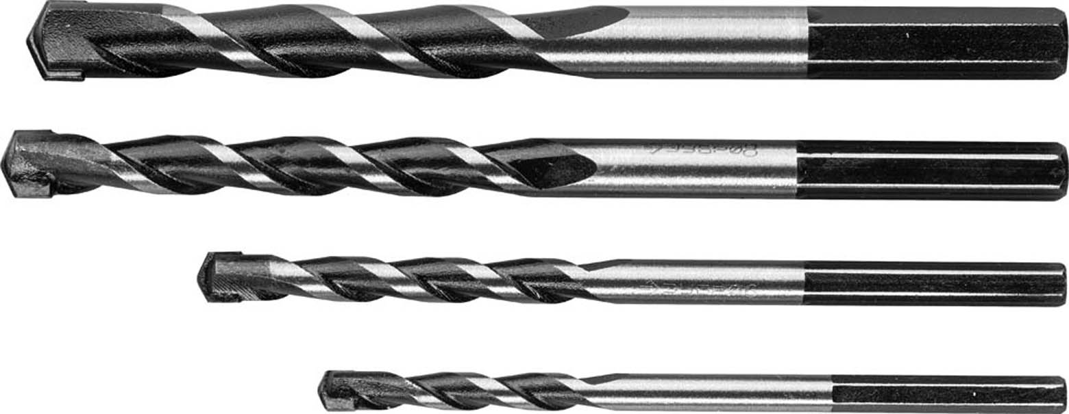Набор ЗУБР Свёрла "СУПЕР-6" по бетону ударные, с шестигранным хвостовиком, 5-6-8-10 мм, 4шт