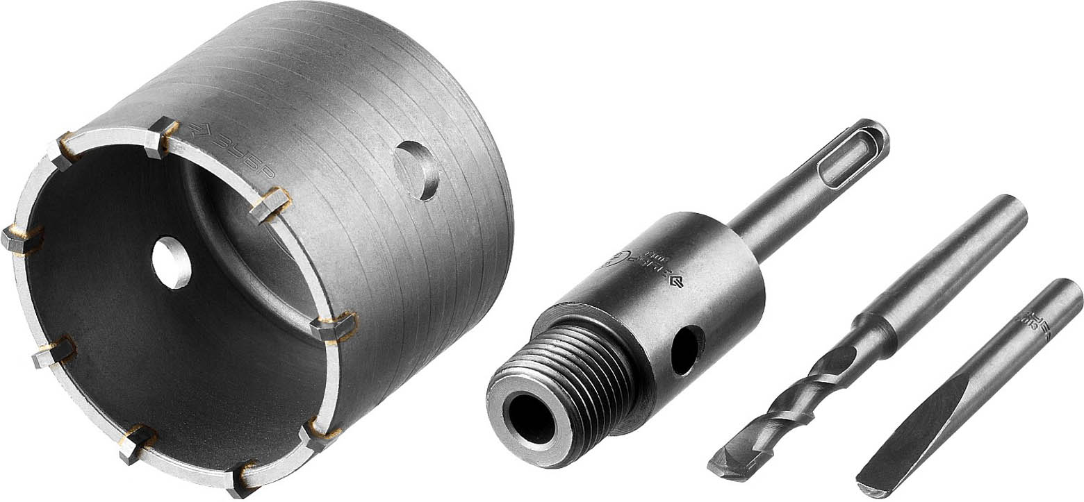 Коронка ЗУБР буровая, коническая посадка центрирующего сверла, SDS-Plus хвостовик, в сборе, 73мм