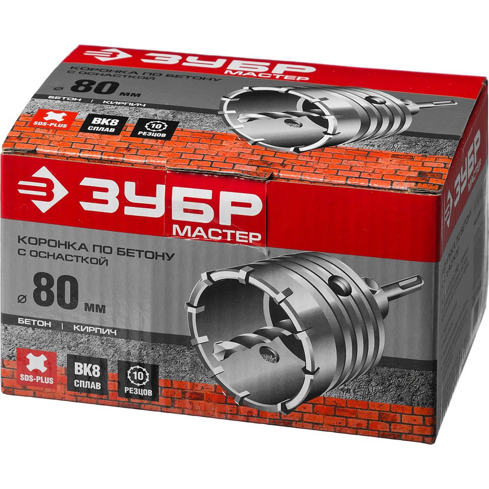 Коронка по бетону ЗУБР "МАСТЕР" с державкой SDS-Plus, 80 мм