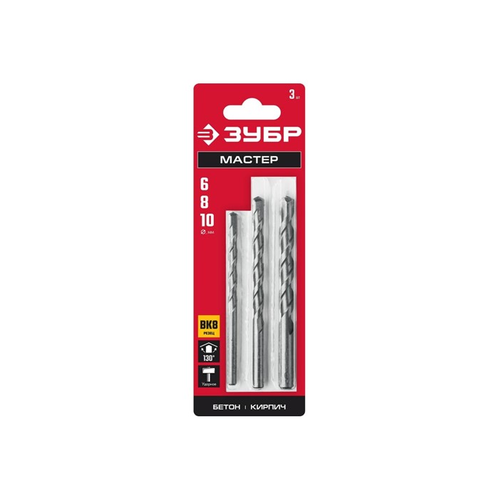Набор сверл по бетону ЗУБР Мастер 3 шт.