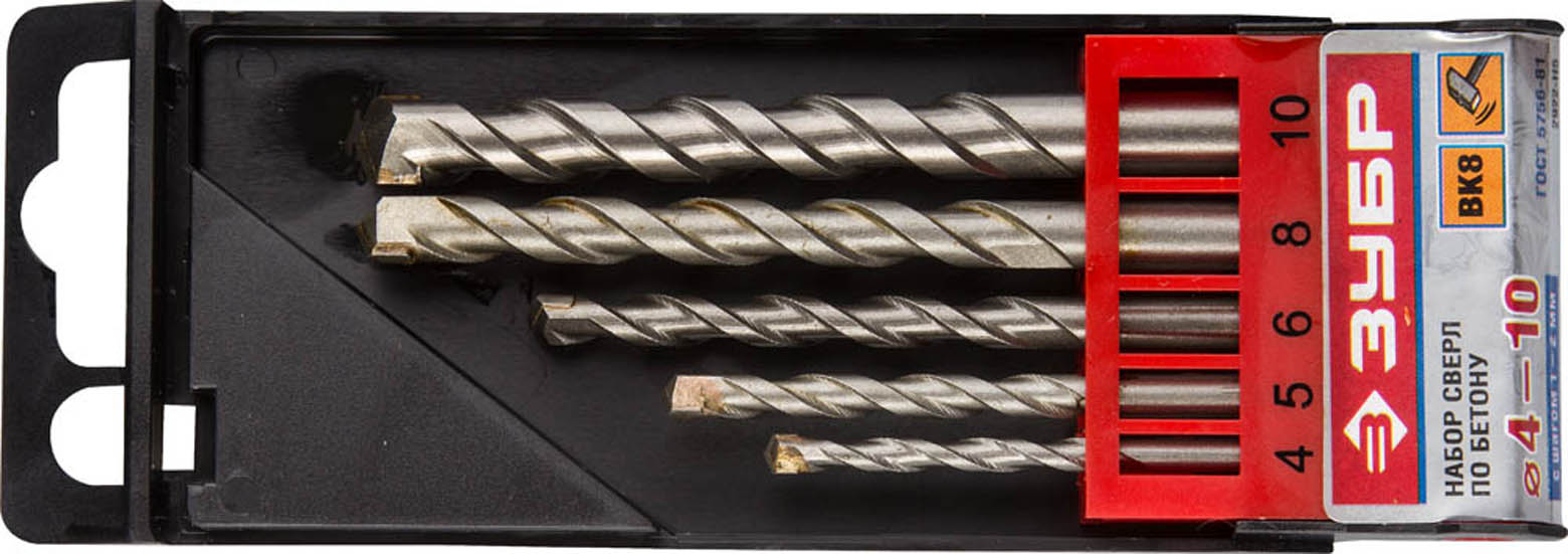 Набор ЗУБР Свёрла "МАСТЕР" по бетону, ударные, 4; 5; 6; 8; 10мм, 5шт