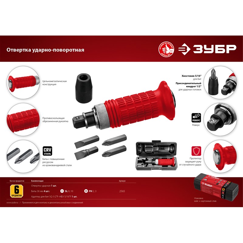 Отвертка ударно-поворотная 6 предм., ЗУБР