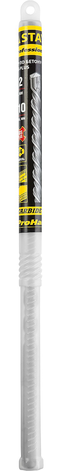 Бур по бетону SDS Plus STAYER 2930-310-12_z01, для перфоратора, применяется при сверлении отверстий в бетоне, граните, кирпичной кладке, камне и твердом известняке. Повышенный ресурс. Твердосплавная пластина ВК8 в форме зубила и углом при вершине 130 облегчает центрирование бура. Спираль S4 с усиленным сердечником обеспечивает оптимальное соотношение между устойчивостью к излому бура и быстрым отводом шлама.