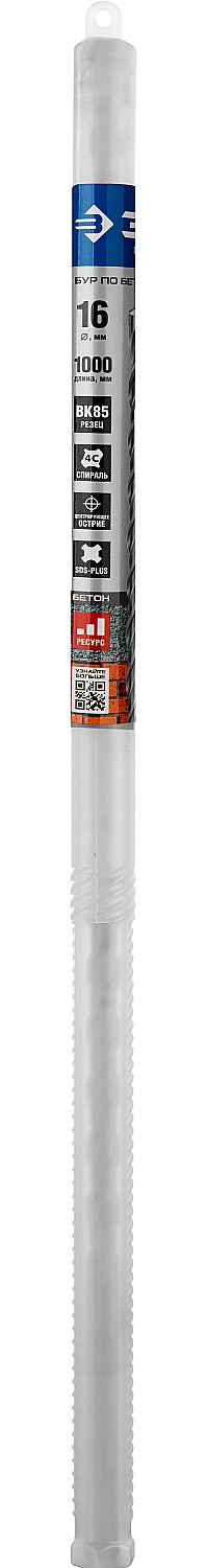 Бур по бетону SDS Plus ЗУБР 29314-1000-16_z01, для ударного сверления отверстий в бетоне, граните, кирпичной кладке, камне и твердых известняках. Используются на легких и средних перфораторах с зажимом SDS-plus. Имеет повышенный ресурс благодаря усиленному наконечнику из твердого сплава ВК85. Конструкция головки бура из наконечника с двумя резцами и центрирующим острием для быстрого сверления. Геометрия наконечника в форме зубила для динамичного и агрессивного врезания в материал. Спираль 4С с усиленным сердечником обеспечивает оптимальное соотношение между устойчивостью к излому бура и быстрым отводом шлама, подавляет вибрацию и способствует лучшей передаче энергии удара непосредственно на твердосплавный резец. Износостойкое покрытие защищает от коррозии.