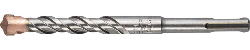Бур по бетону SDS Plus ЗУБР 29314-160-14, для перфоратора, применяется при сверлении отверстий в бетоне, граните, кирпичной кладке, камне и твердых известняках. Повышенный ресурс. Конструкция головки бура из твердосплавной пластины ВК85 с двумя резцами и центрирующим наконечником для быстрого сверления. Геометрия наконечника в форме зубила для динамичного и агрессивного врезания в материал. Спираль 4S с усиленным сердечником обеспечивает оптимальное соотношение между устойчивостью к излому бура и быстрым отводом шлама, подавляет вибрацию и способствует лучшей передаче энергии удара непосредственно на твердосплавный резец.