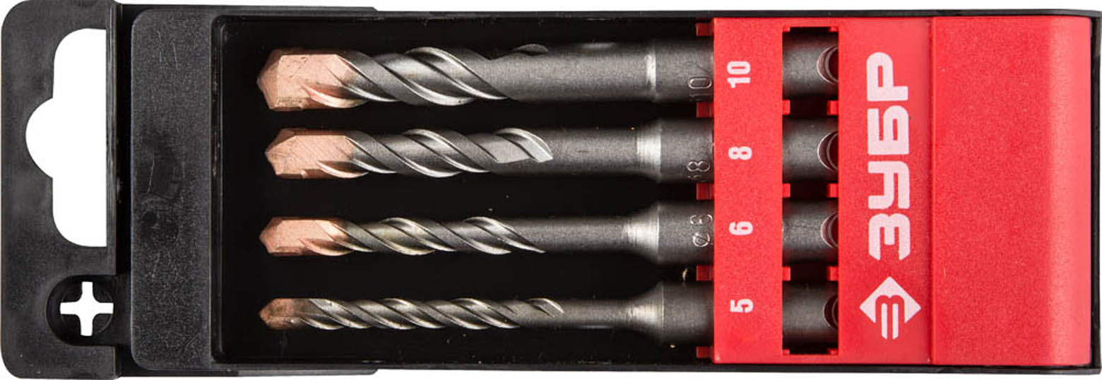 ЗУБР Набор буров SDS-plus 4 шт: 5 х 110, 6 х 110, 8 х 110, 10 х 110 мм, Профессионал