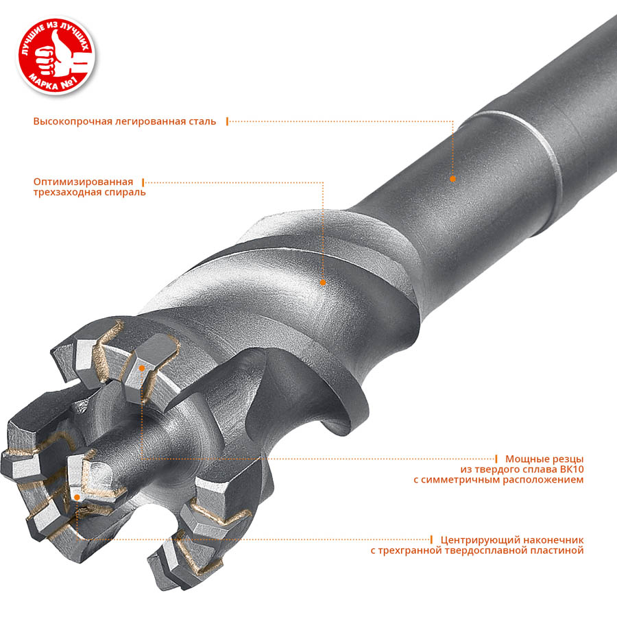 Проломной бур по бетону ЗУБР 29330-45-600, предназначен для ударного сверления отверстий большого диаметра и глубины в бетоне, в том числе в армированном.