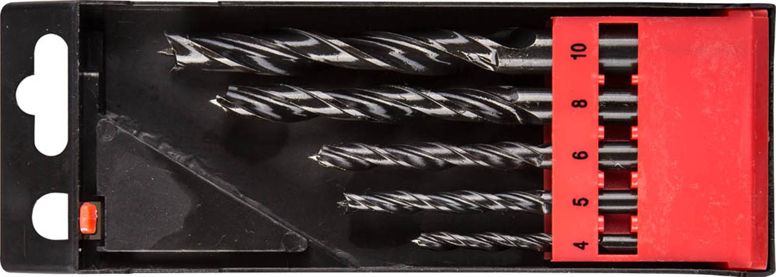Набор сверл спиральных по дереву, 5шт(d=4-10мм), М-образная заточка, сталь 65Г, ЗУБР Эксперт 29421-H5