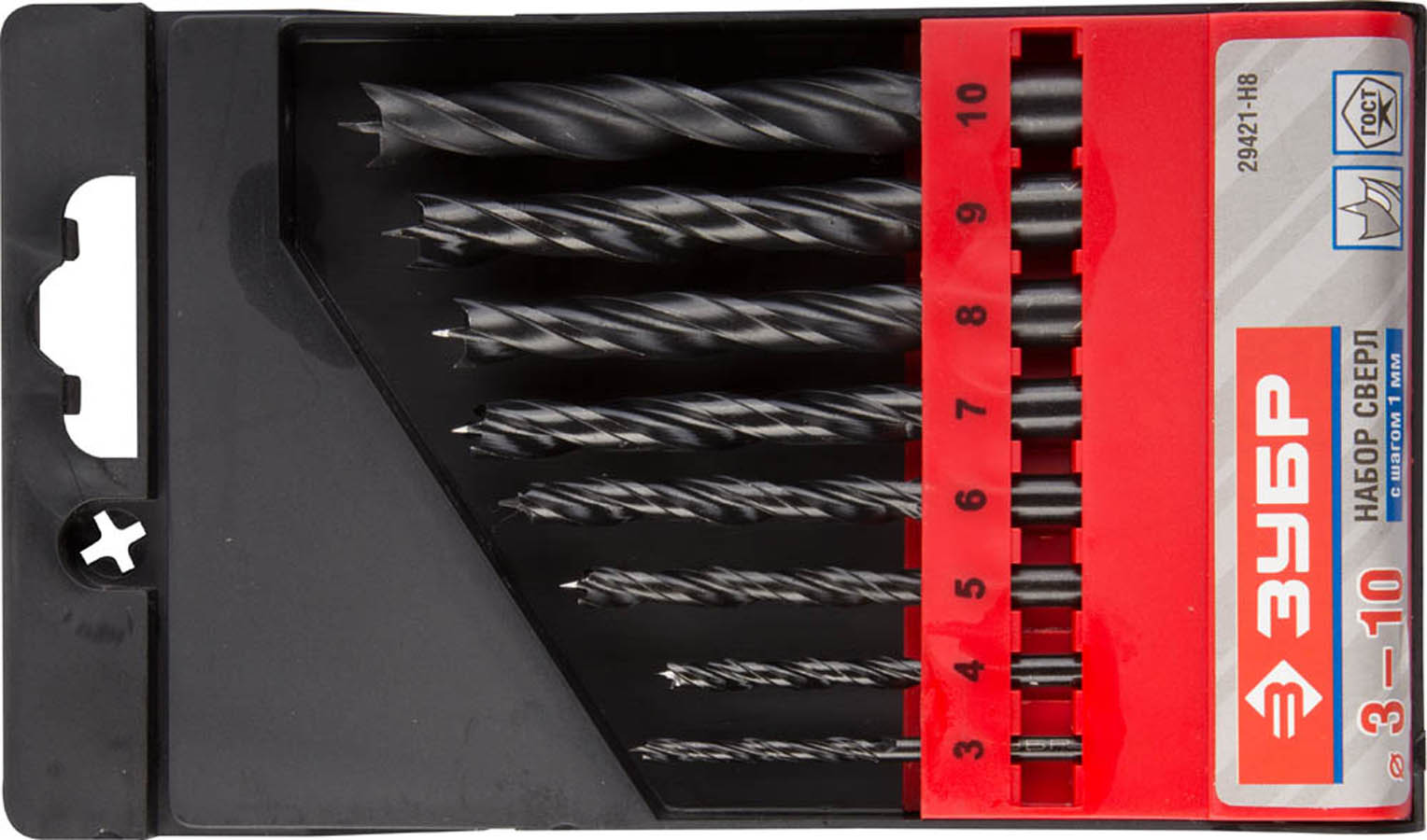 Набор сверл спиральных по дереву, 8шт(d=3-10мм), М-образная заточка, сталь 65Г, ЗУБР Эксперт 29421-H8